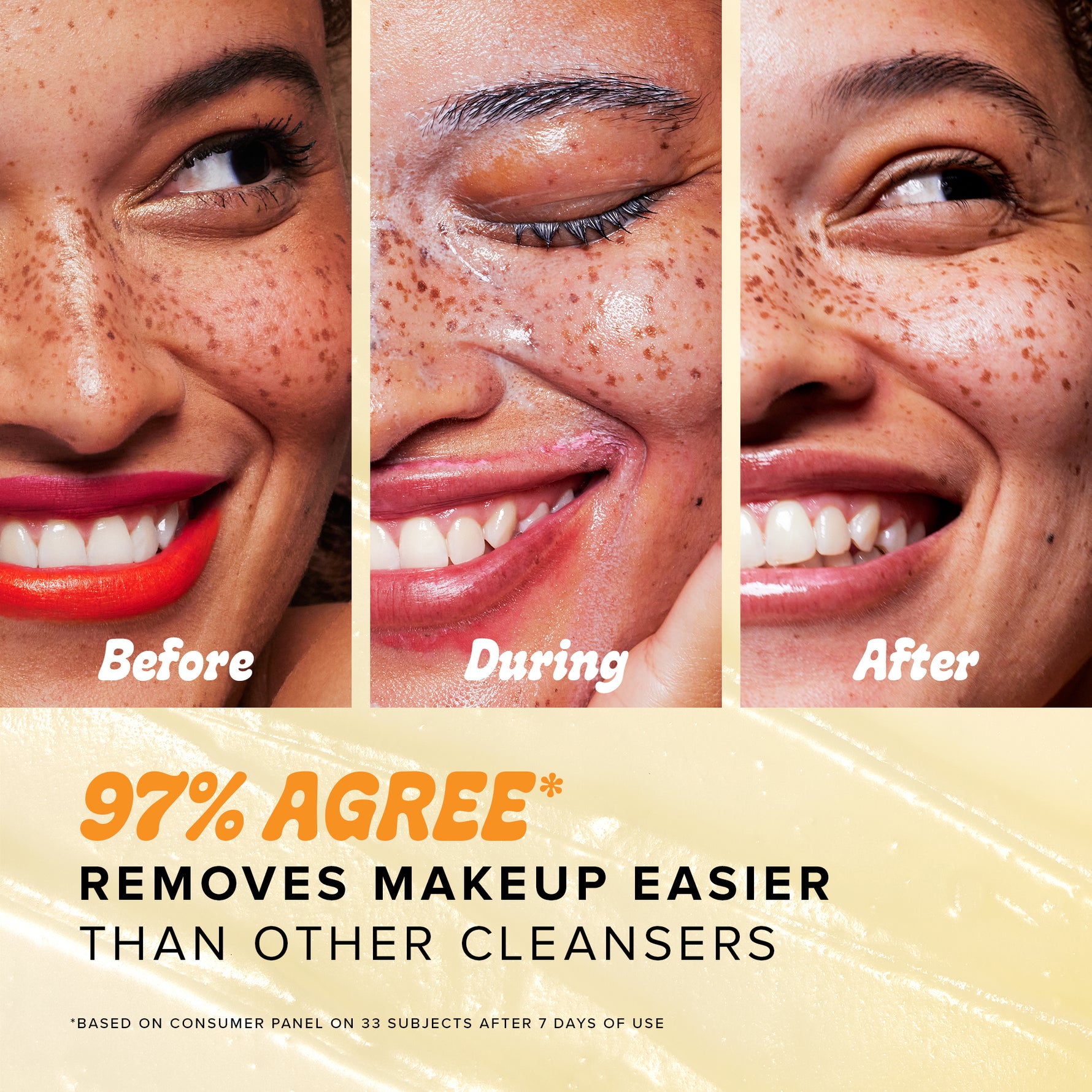 Rinse with water. If using to break down makeup, wipe off any residue with a warm, damp washcloth or makeup remover cloth. Can be used as step 1 of a double cleanse, or alone, AM/PM.